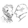 "Перед нами два портрета: Гоголя и Пушкина. Рисуя друг друга, каждый доходил до самой сути в изображении личности писателя, толковании его творчества. Словесные портреты Пушкина и Гоголя - своего рода комментарии к рисункам - содержатся в их переписке." |